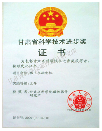 甘肅省科學(xué)技術(shù)進(jìn)步證書